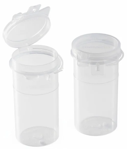 - One-piece container with an attached lid to reduce the chance of contamination