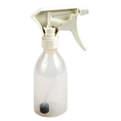 These unique 250, 500 and 1000mL reusable polyethylene spray bottles with a polypropylene sprayer will perform upright or inverted. Upside down spray bottle has limber silicone tubing attached to a stainless steel weight with a PP filter remains immersed in the liquid in the upside down position and allows the product to work. This unique feature lets a user spray conveniently from any direction while reaching many inaccessible areas. Adjust the spray knob to obtain a fine mist to a steady stream using upside down spray bottle.