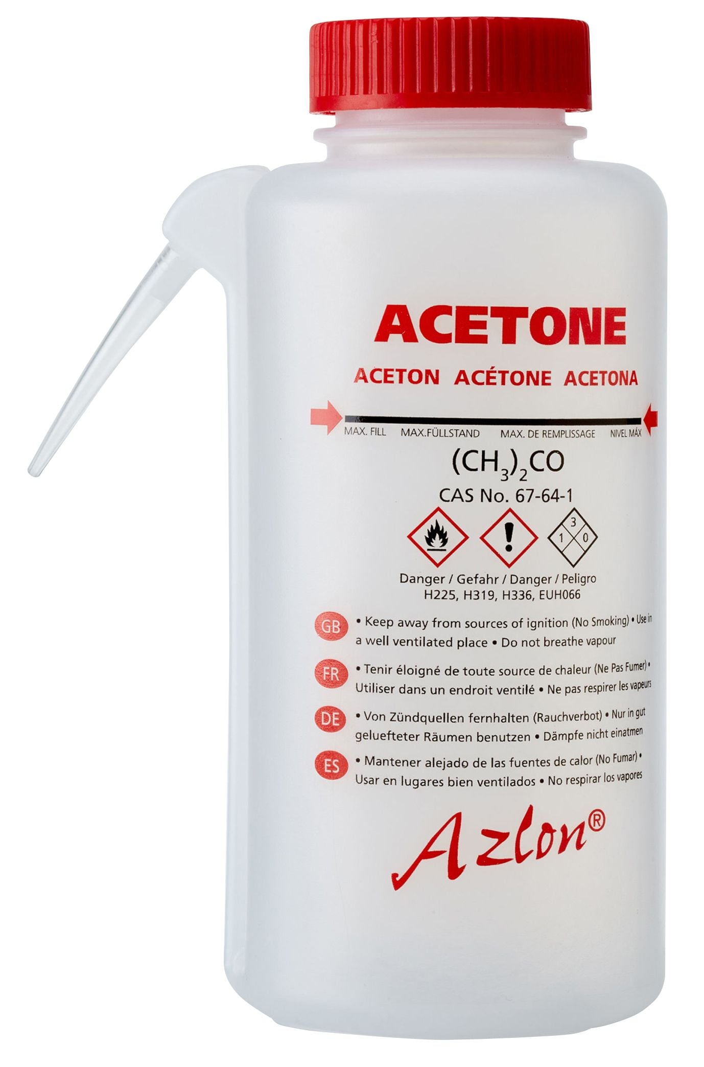 Prevent contamination while sampling and testing using Dynalon GHS integral wash bottles, 500 mL. These wide-neck bottles come printed in five languages with options for five different solvent labels (listed below). The integral spout prevents the inner tube from ever touching the benchtop.