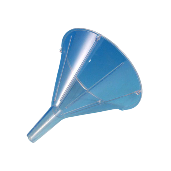 These economical disposable funnels are available in either transparent polystyrene or translucent polypropylene. They are lightweight, have reinforced rims and inside fluting. They are tapered at a 60° angle.