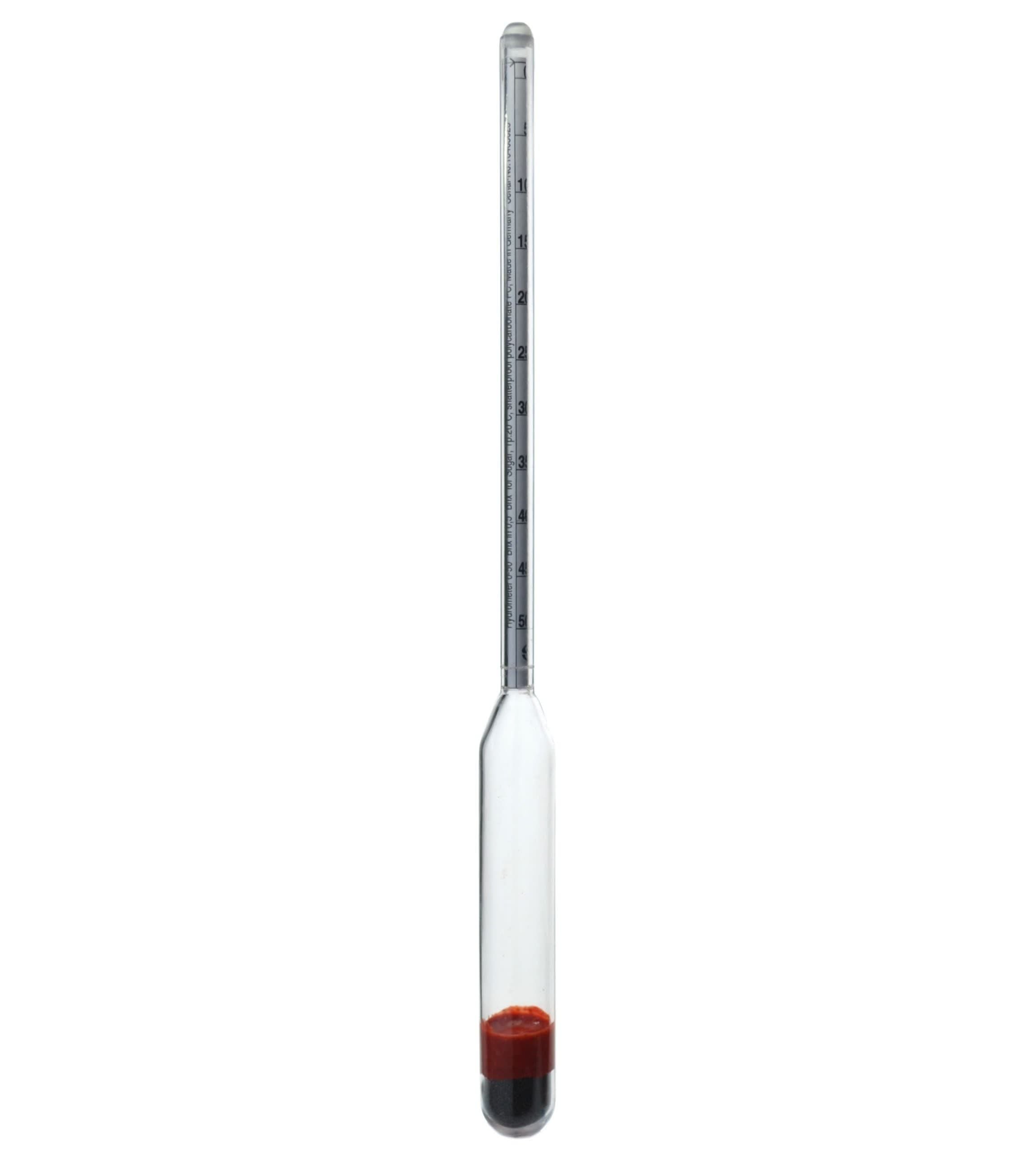 These new plastic hydrometers are fabricated from polycarbonate (PC), which makes the instrument shatter-proof, while offering glass-like clarity for ease of reading. All models are plain form, so a separate thermometer should be used to measure the temperature of the sample and correct for any temperature variations. Temperature standard is 60º F, Length 300 mm. The plastic hydrometers are made for Specific Gravity, Baume, Sugar Brix, Salt-Brine scales.