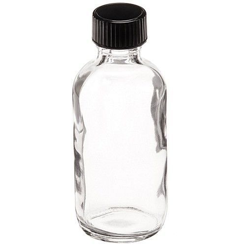 - Clear Glass Boston Round Bottle with Black Phenolic Closure (PE Cone Lined)