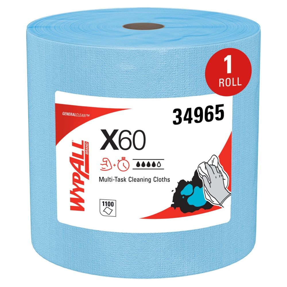 WypAll® is the leading disposable wipe brand in the US and Canada. WypAll® General Clean X60 Multi-Task Cleaning Cloths are more absorbent than rags and use HydroKnit technology for a lightweight yet powerful cloth. Designed to be better than laundered rags, they're residue-free and strong, wet or dry. They're useful for solvents, lubricant removal, adhesive cleaning, and grease and soil removal in tight spaces. These large, perforated towels come on a small roll for easy storage and can often be reused, reducing waste. WypAll® X60 cloths offer effective cleaning and good value.