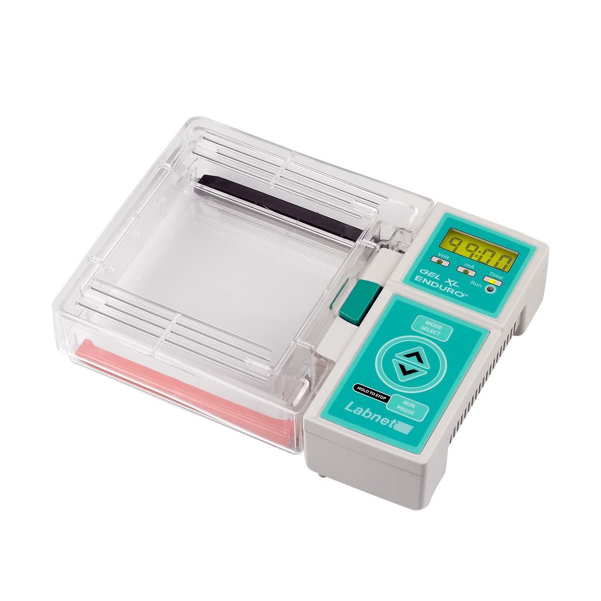 Labnet's ENDURO™ Gel XL includes all components necessary to cast and run horizontal gels: gel trays, combs, casting stand, gel tank and digital power supply. The migration tank, gel trays and multichannel combs are molded for leak-proof performance and a long service life. The direct connection of the power supply into the gel box eliminates the need for power leads.