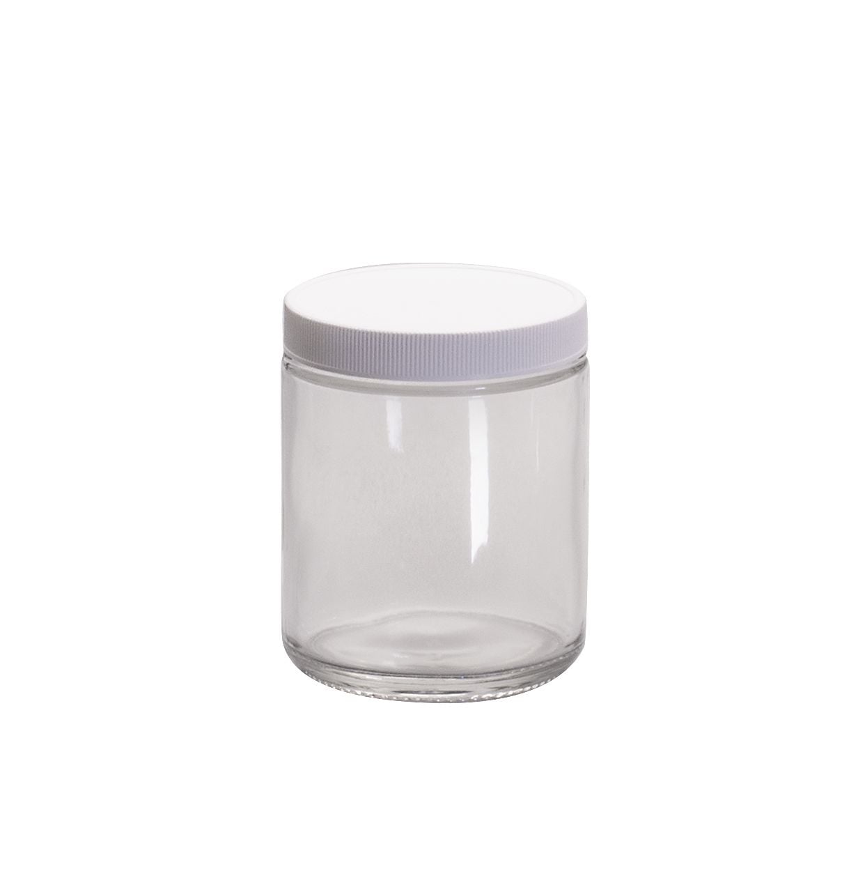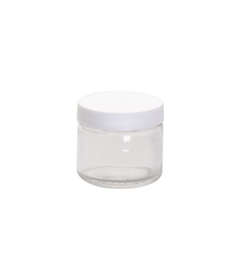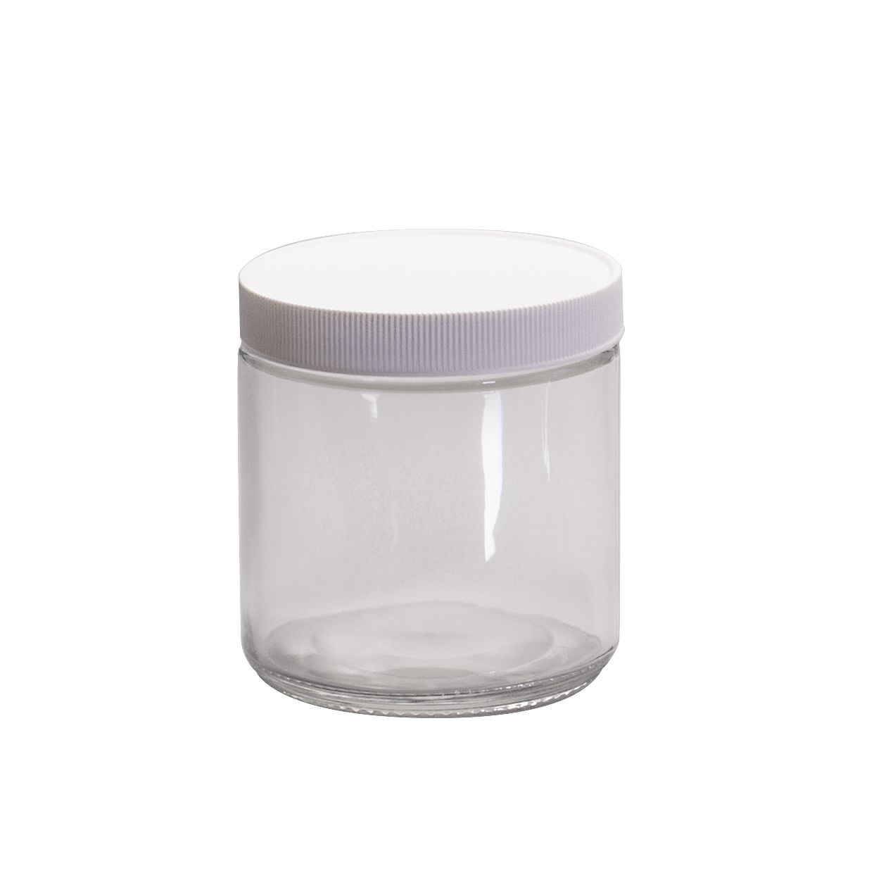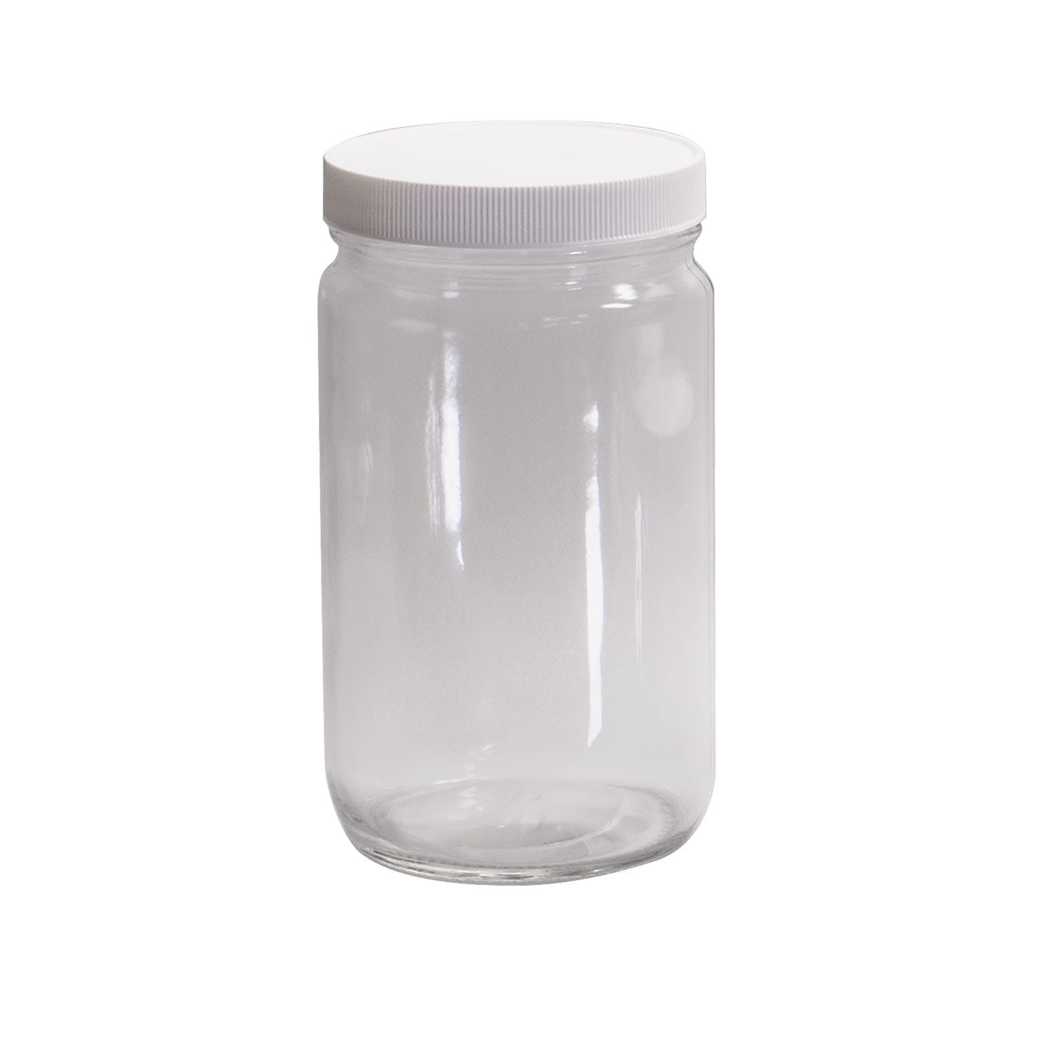 Class 1 Short Straight Sided Wide Mouth Glass Jars, 0.015 in PTFE Lined White Polypropylene Closure