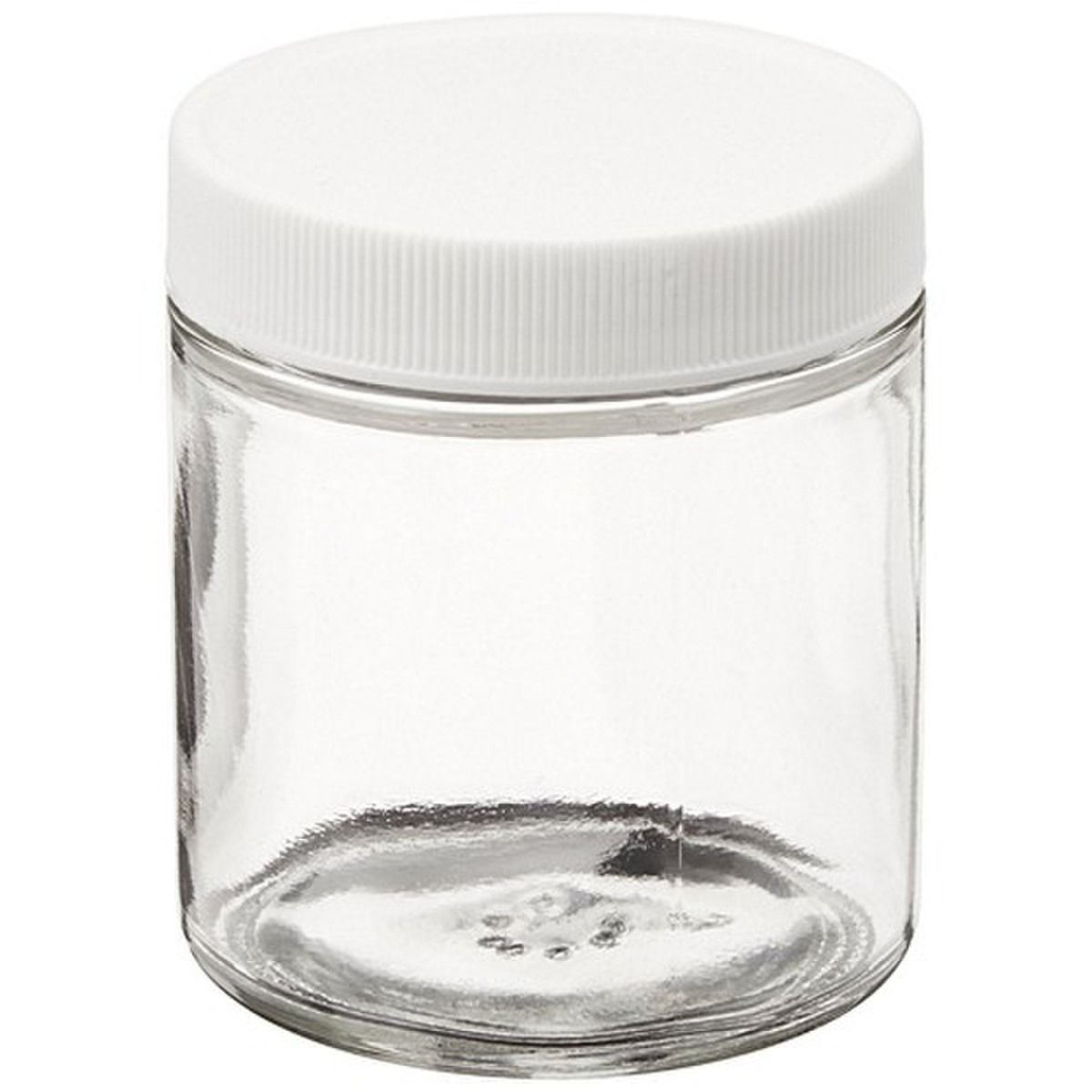 Class 3 Short Straight Sided Wide Mouth Glass Jars, 0.015 in PTFE Lined White Polypropylene Closure