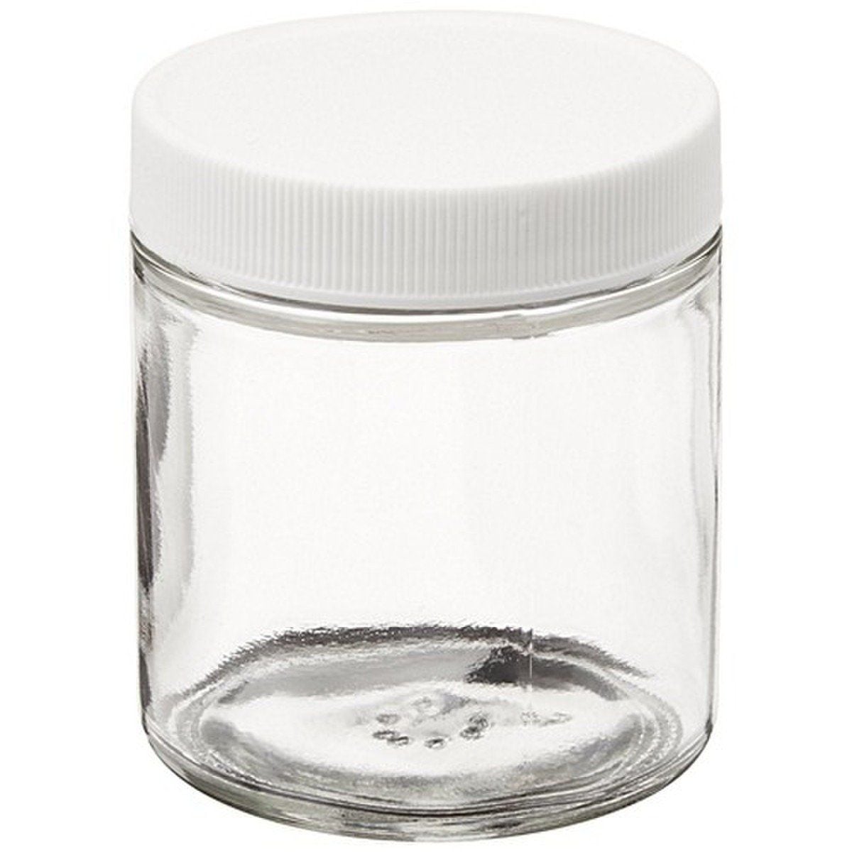 Class 2 Short Straight Sided Wide Mouth Glass Jars, 0.015 in PTFE Lined White Polypropylene Closure
