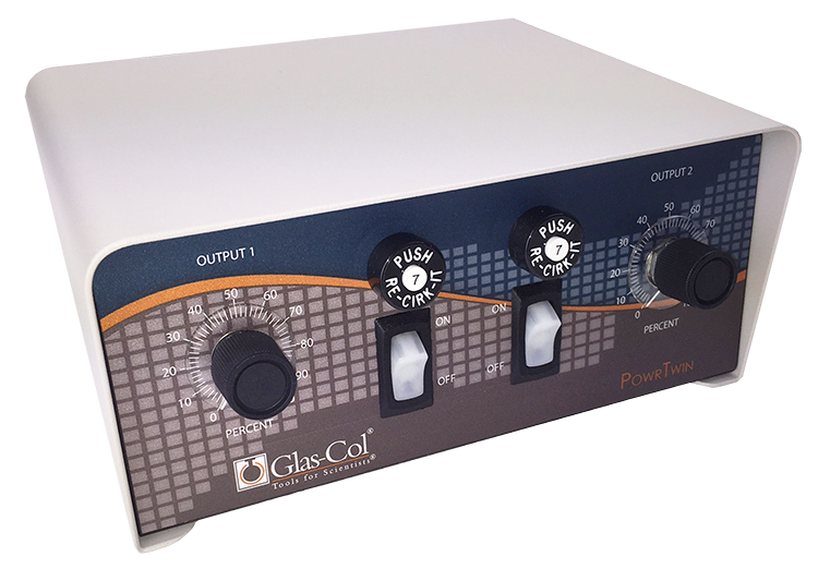 Glas-Col's O Series PowrTwin Control provides independent control of two separate circuits, delivering precise manual operation for laboratory heating equipment such as heating tapes, cords, and mantles. Like the PowrTrol, the O Series PowrTwin is a solid-state, proportional-voltage controller with an adjustable output range from 5% to 100% of rated voltage, offering reliable and accurate temperature management on the benchtop.