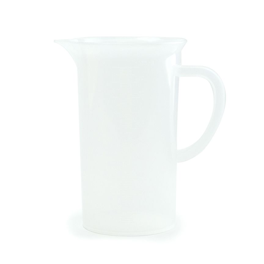 These handy jugs, molded in polypropylene, are clear, autoclavable and have good chemical resistance. All sizes have handles for easy and convenient lifting, and feature raised graduations.