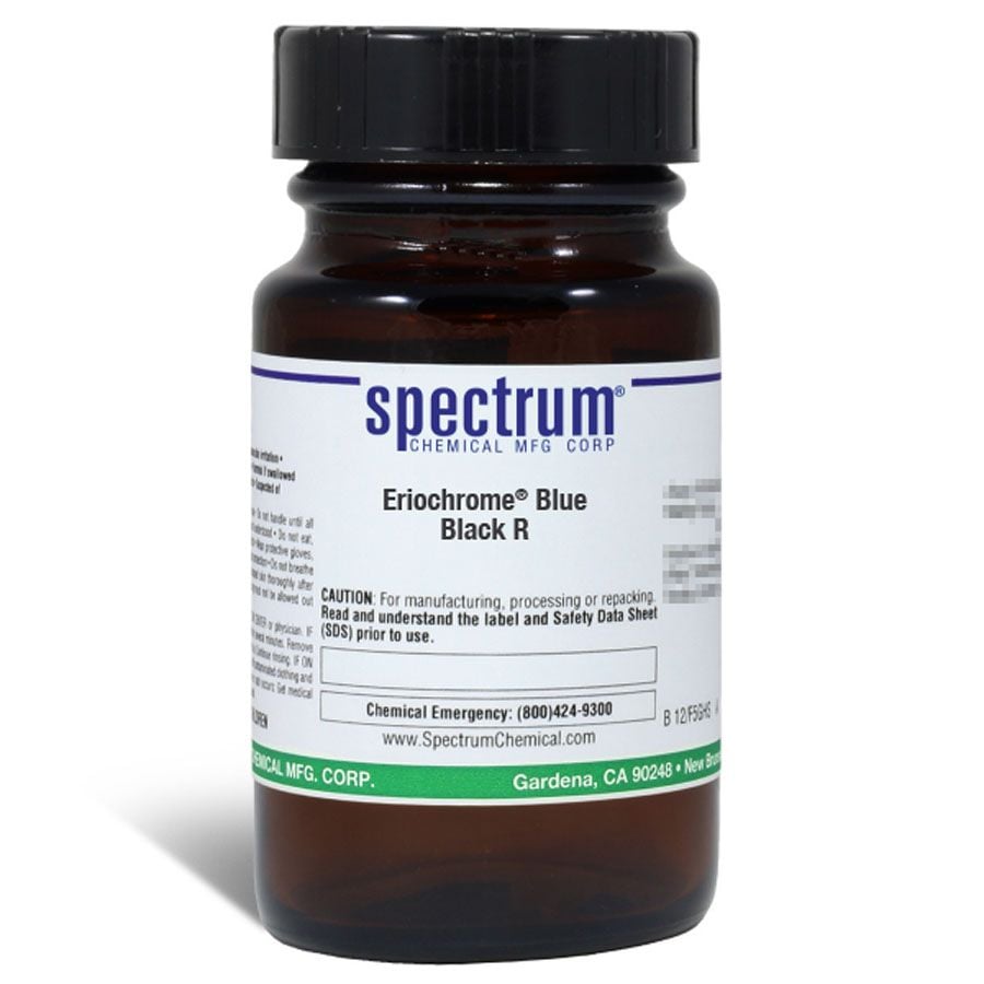 Choose the highest quality solutions and chemicals from Spectrum Chemical. Shop Eriochrome(R) Blue Black R, also known as Solochrome Black T, is a complexometric indicator used as an indicator in EDTA titration; it can also be used to detect rare earth metals. Ungraded products supplied by Spectrum are indicative of a grade suitable for general industrial use or research purposes and typically are not suitable for human consumption or therapeutic use.