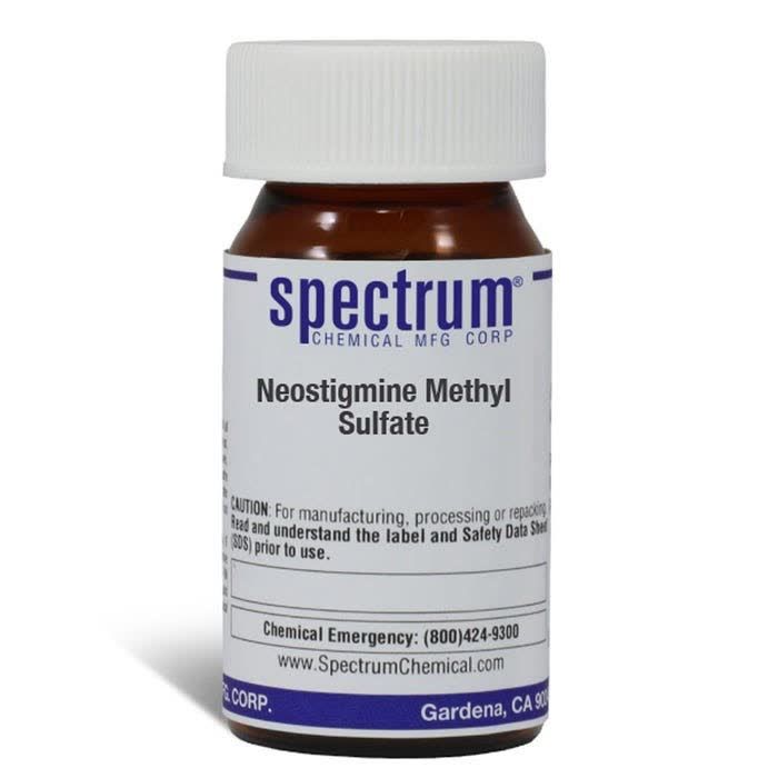 Choose the highest quality solutions and chemicals from Spectrum Chemical. Shop Neostigmine Methyl Sulfate | Non-graded Neostigmine Methyl Sulfate supplied by Spectrum is indicative of a grade suitable for general industrial use or research purposes and typically are not suitable for human consumption or therapeutic use.