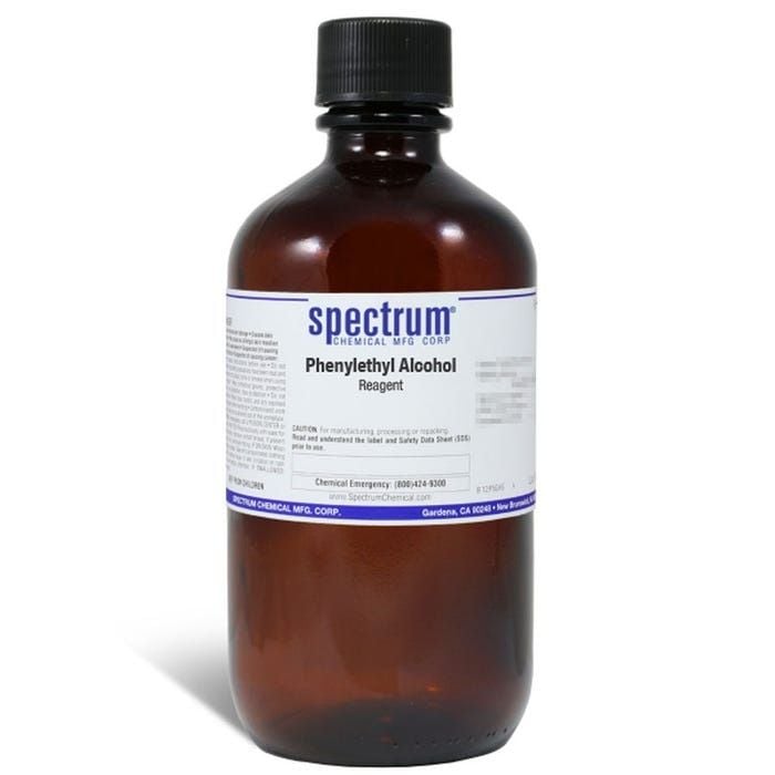 Choose the highest quality solutions and chemicals from Spectrum Chemical. Shop Phenylethyl Alcohol, Reagent is a widely naturally occurring aromatic alcohol that is found in a range of essential oils including rose, orange blossom, champaca and others. It has a pleasing floral odor and is a completely colorless liquid that is slightly water-soluble and miscible with ethanol. Commonly used in the perfume and cosmetic industry it is also used as an antimicrobial in pharmaceutical preparations. The USP grade indicates it is graded suitable for personal care, cosmetic and pharmaceutical applications. All Spectrum Chemical manufactured USP grade products are manufactured, packaged and stored under current Good Manufacturing Practices (cGMP) per 21CFR part 211 in FDA registered and inspected facilities.