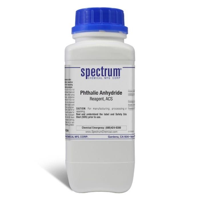 Choose the highest quality solutions and chemicals from Spectrum Chemical. Shop Phthalic Anhydride, Reagent, ACS, also known as Isobenzofuran-1,3-dione, is a versatile intermediate in organic chemistry. As an ACS grade quality reagent, its chemical specifications are the de facto standards for chemicals used in many high-purity applications and typically designate the highest quality chemical available for laboratory use. Spectrum Chemical manufactured Reagent ACS grade products meet the toughest regulatory standards for quality and purity.