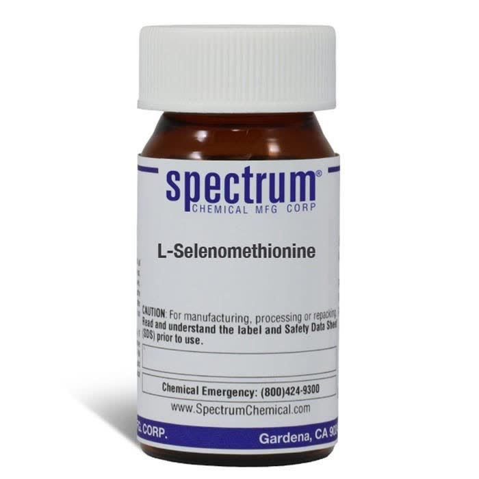 L-Selenomethionine, also known as MSE, is an amino acid containing selenium and readily oxidized. Its ability to deplete reactive oxygen species causes its antioxidant activity. Ungraded products supplied by Spectrum are indicative of a grade suitable for general industrial use or research purposes and typically are not suitable for human consumption or therapeutic use.