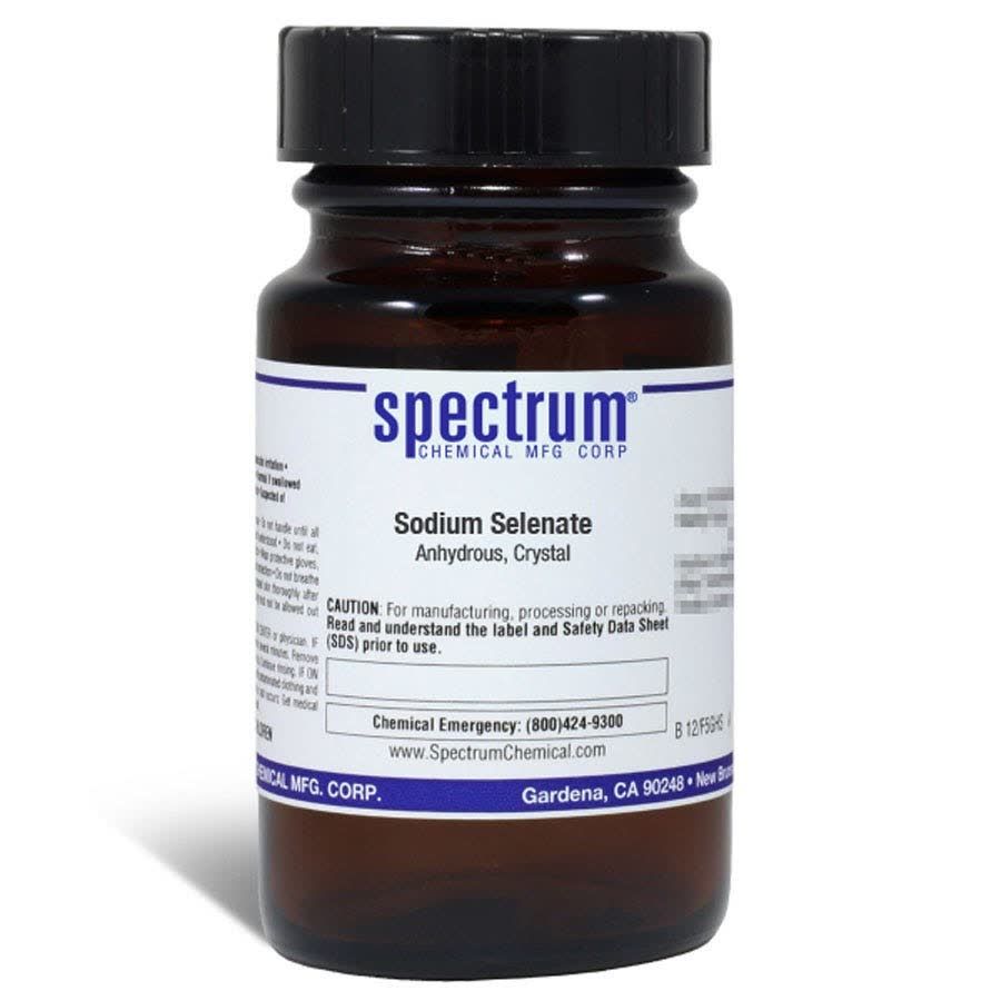 Sodium Selenate, Anhydrous, Crystal has several uses, including the manufacturing of glass, specifically red-hued glass, but can also produce clear glass when mixed with ferrous oxides. It's a white or gray solid substance that is highly toxic. Regardless of the toxicity, sodium selenate is used in vitamin supplements as a trace mineral additive and is being investigated as a potential anti-Alzheimers drug candidate.