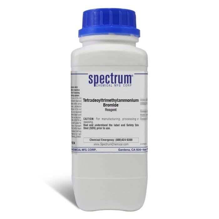 Choose the Spectrum Chemical Tetradecyltrimethylammonium Bromide, Reagent for your applications. Also known as Myristyltrimethylammonium Bromide ; Myrtrimonium Bromide.