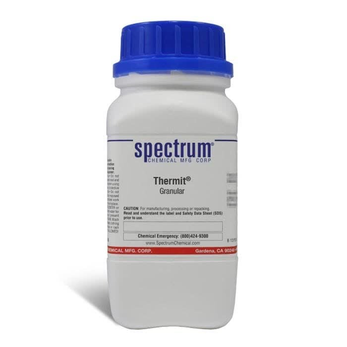Thermit(R), Granular, also called thermite, is a pyrotechnic composition of fuel, metal oxide, and metal powder. Ungraded products supplied by Spectrum are indicative of a grade suitable for general industrial use or research purposes and typically are not suitable for human consumption or therapeutic use.