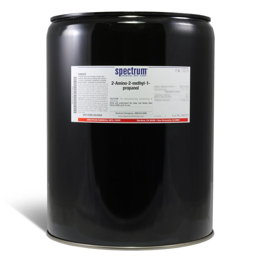 Choose the highest quality solutions and chemicals from Spectrum Chemical. Shop 2-Amino-2-methyl-1-propanol, or aminomethyl propanol is a colorless, viscous liquid that functions as a pH adjuster. It is also used as an intermediate in drug synthetic schemes. Ungraded products supplied by Spectrum are indicative of a grade suitable for general industrial use or research purposes and typically are not suitable for human consumption or therapeutic use.