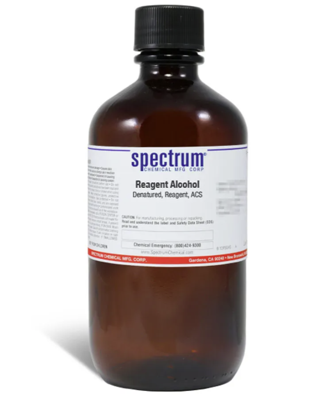 Reagent Alcohol, Denatured, Reagent, ACS is also known as ethanol and is an extremely volatile and flammable liquid that is colorless. In the laboratory, it is used mainly as an analytical solvent. As an ACS-grade reagent, this Spectrum Chemical manufactured compound is used as the quality standard against which other substances are graded and has met the toughest regulatory standards for quality and pureness.