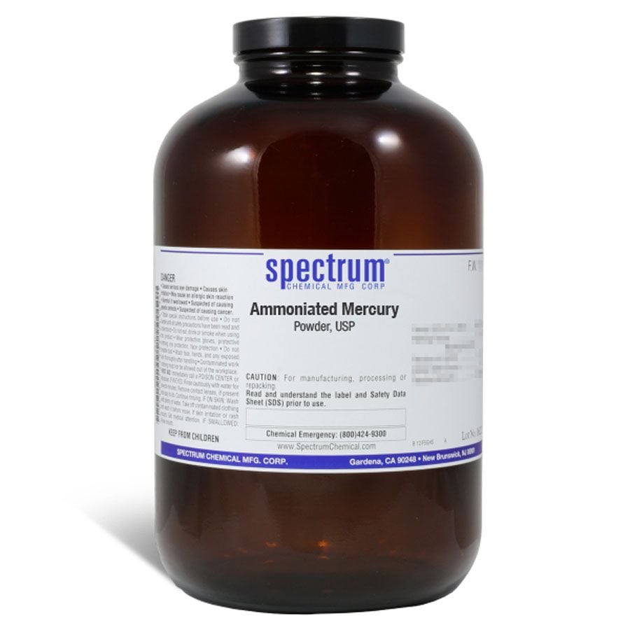 Choose the highest quality solutions and chemicals from Spectrum Chemical. Shop Ammoniated Mercury, Powder, USP. All Spectrum Chemical USP grade products are manufactured, packaged and stored under current Good Manufacturing Practices (cGMP).?