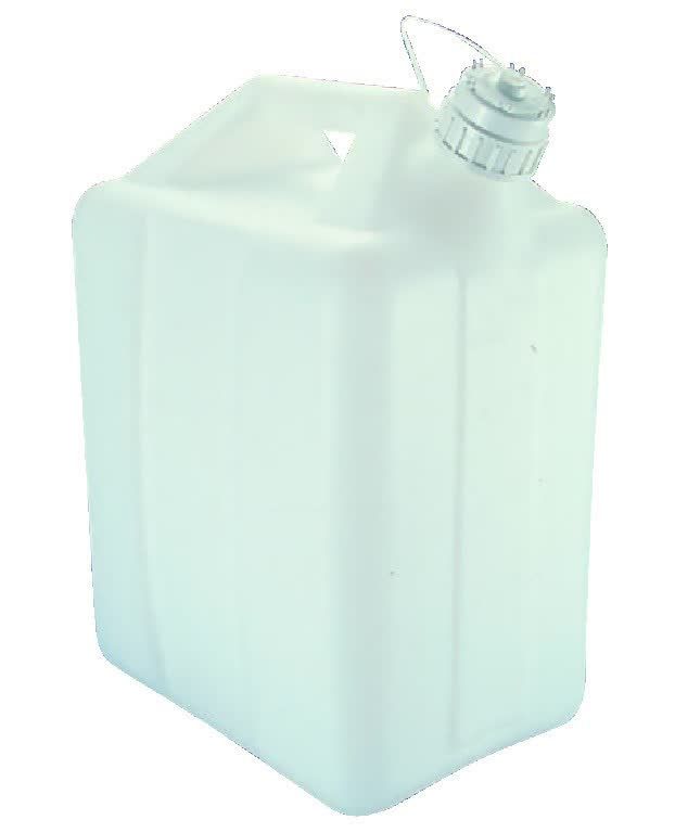Sturdy, leakproof containers are intended for hard use. A wide stance and low center of gravity provide greater stability. Integral spout is long enough for accurate pouring, and features a strap-fastened cap. Molded-in graduations are provided in liters and gallons. Recessed bottom provides second handgrip for pouring. Jerricans 73520-057 and -059 weigh 13kg (28.7 lbs.) at their normal fill volume, just right for unassisted lifting. Jerrican 73520-059 features a second spout with a tethered cap ... Read more