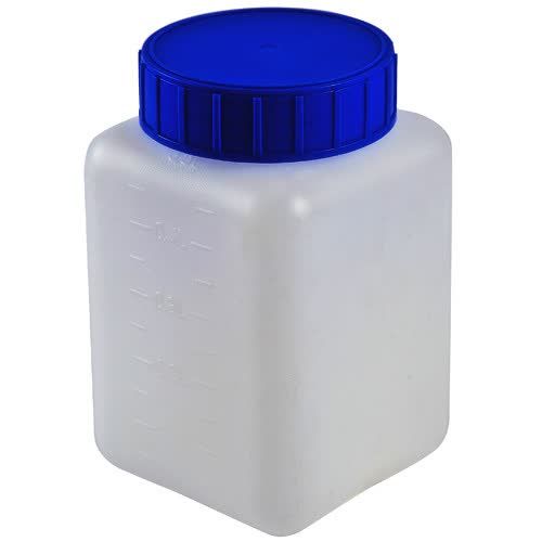 Lightweight rectangular bottles with plug seal blue screw caps. Feature molded in graduations for approximate volume measurements. Supplied caped in shrink-wrapped packs.