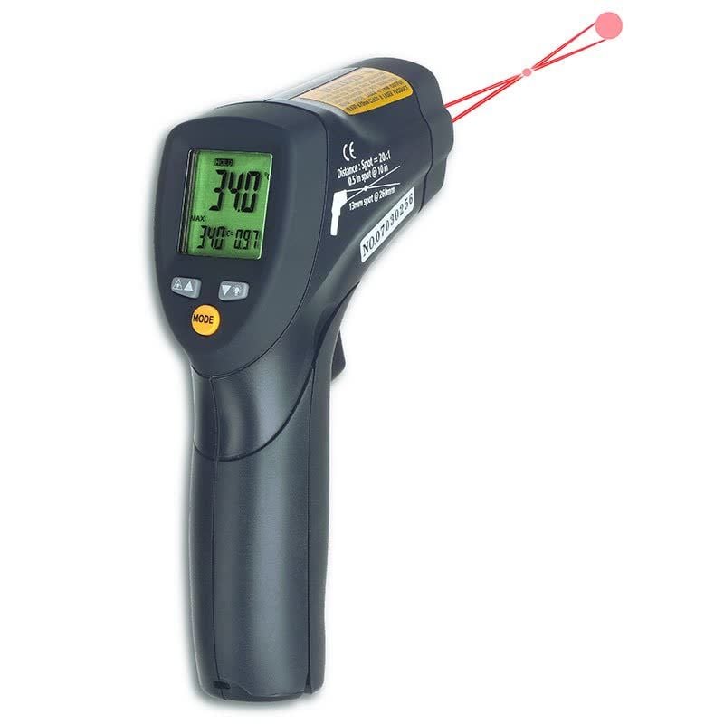ScanTemp 485 infrared thermometer has a wide temperature range of -50 to 800°C, high precision due to special glass lens, with double-laser sighting (shows the exact spot size area), and an optical resolution of 20:1 allow technicians to carry out accurate non-contact surface measurements for electrical and mechanical maintenance, HVAC checks, automotive testing and other applications, anywhere that temperature is a factor.