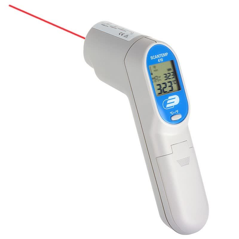 ScanTemp 410 use infared technology to measure the temperature of materials up close, or from a distance. You simple aim, pull the trigger, and read the temperature on a large, backlight LCD display. Lightweight, compact, and easy-to-use, the ScanTemp 410 can safety measure hot, hazardous, or hard-to-reach materials without contaminating or damaging the material's surface. For safe and accurate temperature measurement, reach for a ScanTemp 410.