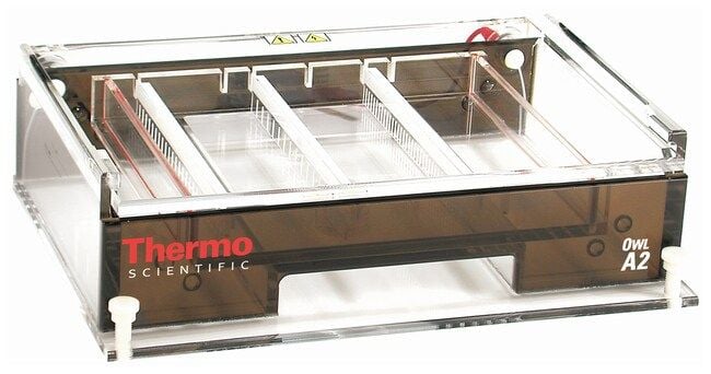 Includes: Large gel system that consists of buffer chamber with three-point leveling base, Supersafe lid with attached power supply leads, UVT gel tray with gasketed end gates, as well as 16-well, 24-well, and 36-well, 1.5m thick combs.