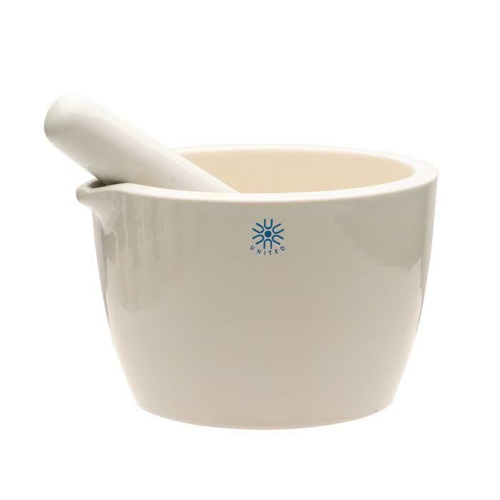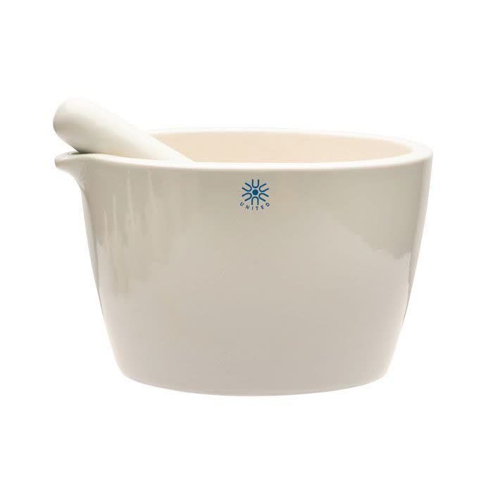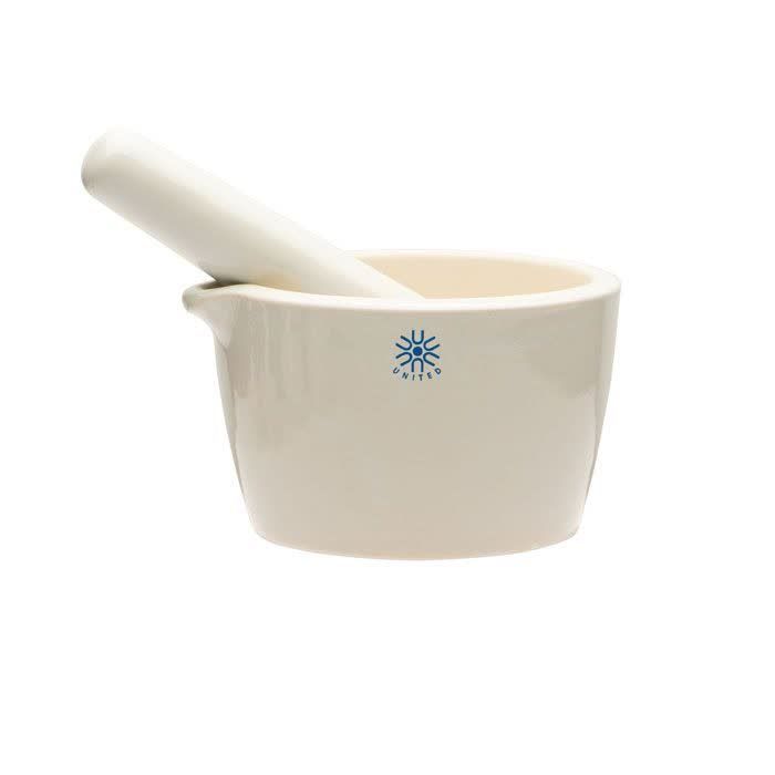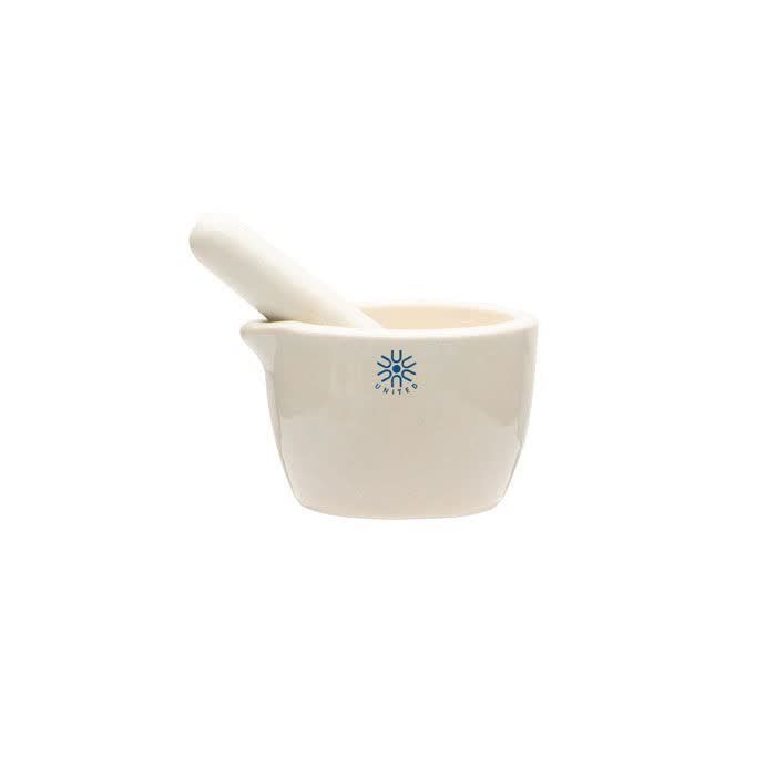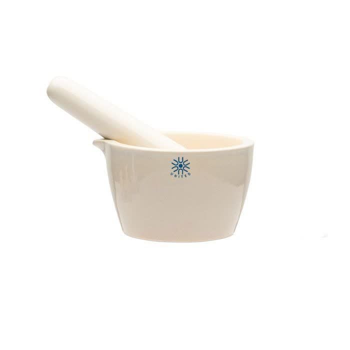 Mortars with lips are glazed on the outside, except for the bottom. Pestles are glazed to grinding surface. Oversized pestle for easier grinding.