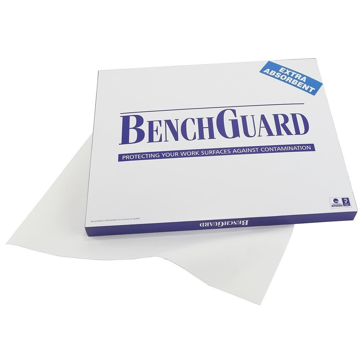BenchGuard wallet (100 sheets). BenchGuard wallet sheets have highly absorbent upper surfaces that contain spills and a tough polycoated base to protect your work surface. Standard BenchGuard absorbs up to 400ml per square meter, the competition absorbs 274ml or less! For your most demanding applications choose BenchGuard Extra - it absorbs up to 800ml per square meter. Sheets measure 49 x 60 cm.