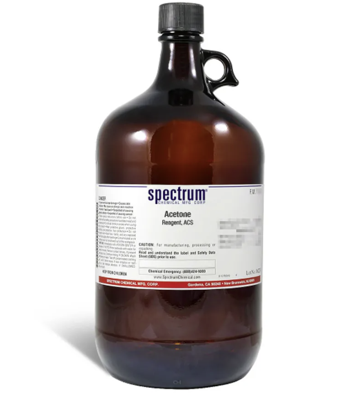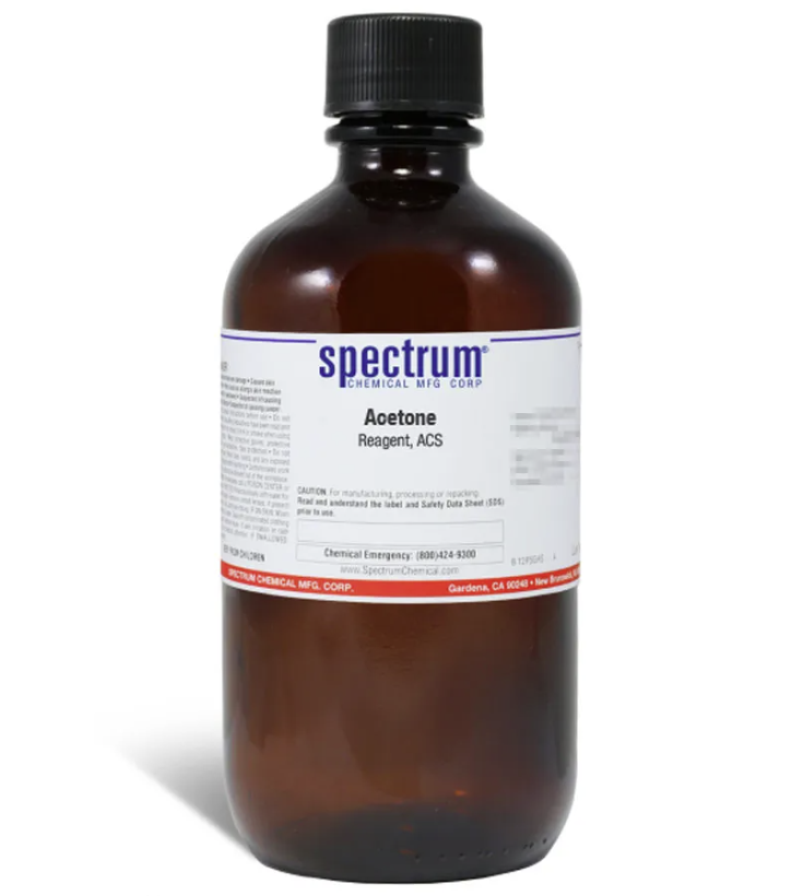Acetone, Reagent, ACS is a colorless, flammable, liquid. Due to its miscibility with water, it serves as an important solvent. Used as a polar aprotic solvent in a wide range of organic reactions, acetone does not form an azeotrope with water. Thanks to its low cost and volatility, it is also commonly used to clean laboratory glassware. Another characteristic of Acetone is that it can be cooled with dry ice to -78°C without freezing allowing this solvent to be used to conduct reactions at low temperatures. As a Reagent ACS grade quality reagent, its chemical specifications are the de facto standards for chemicals used in many high-purity applications and typically designate the highest quality chemical available for laboratory use. Spectrum Chemical manufactured Reagent ACS grade products meet the toughest regulatory standards for quality and purity.