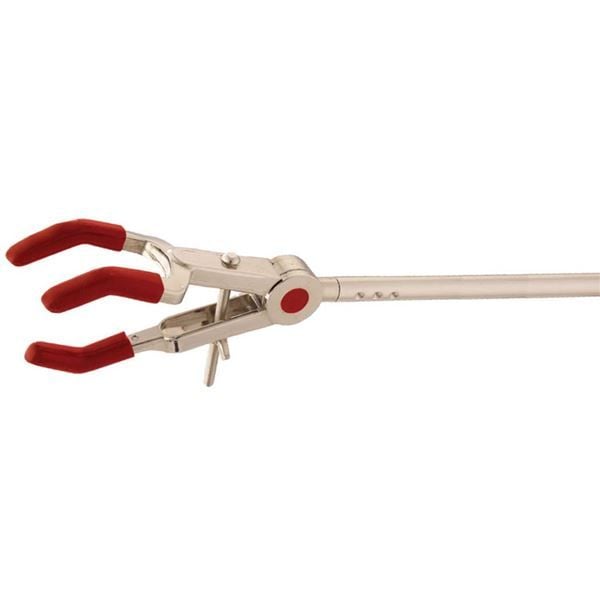 Available in both single and dual prong adjustment, prongs open gradually to maximize grip size without binding. Both designs feature precise pressure regulation when gripping glassware surfaces to reduce chance of breakage. UltraJaws Clamps are constructed with extension rods for easy attachment to lab-frames and other apparatus. Supplied with non-slip vinyl sleeves, and for temperatures above 100°C, fiberglass covers.