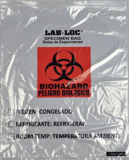 Elkay's Lab-Loc® Reclosable Seal Top Specimen Bags provide an excellent means for securely transferring specimens in healthcare applications. Their three-wall construction provides a handy outer pouch to contain accompanying paperwork during specimen transfer. Since the bags are manufactured in a Trade Agreement Act (TAA)-designated country, they conform with US governmental requirements and are eligible to be sold to governmental organizations such as the Department of Veterans Affairs (VA). They are printed in both English and Spanish and available in a variety of sizes, colors, and printed messages for various types of specimens.