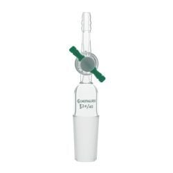 The Chemglass Straight Flow-Control Adapters are used to regulate the flow of gases or liquids into reaction systems. The PTFE stopcock has a bore of 2mm. The hose connection has an outer diameter of 8mm at the middle serration.