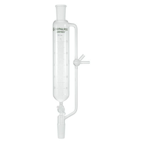 - Glass T-Bore stopcock for purging and isolating funnel contents