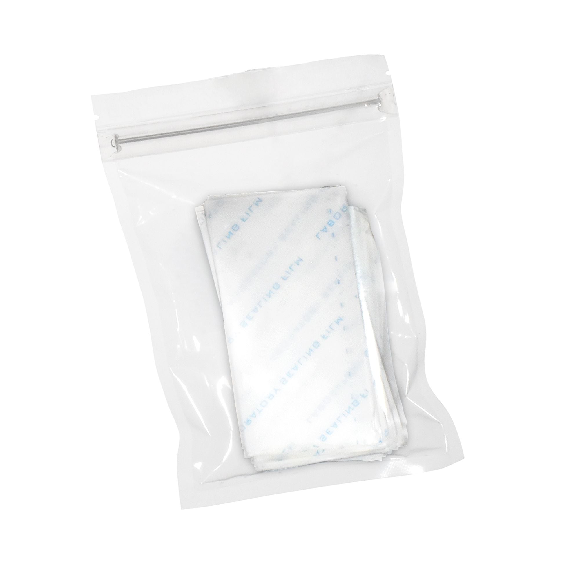 Packaged sterile in resealable bags of 100 ready-to-use sheets