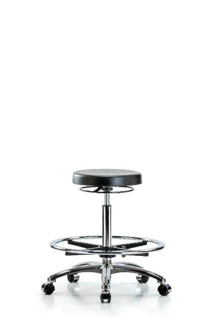 Our ergonomic vinyl stools are durable and offer a 360° all-around height adjustment ring that can be operated from any position. These medium height stools feature your choice of black rolling casters or black glides on a nylon-reinforced fiberglass base. Each ergonomic stool is backed by our 15-year warranty. This stool is also available in desk or high bench height.