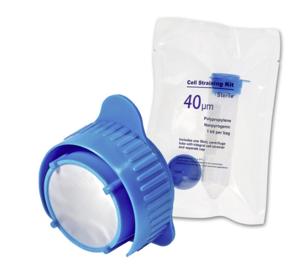 Each sterile kit contains a SureStrain™ Strainer, pre-attached to a 50mL tube, with a separate screw-cap ready for assembly, processing and storage after the filtration is complete. Kits are supplied in easy open “tear-strip” bags and gamma sterilized.