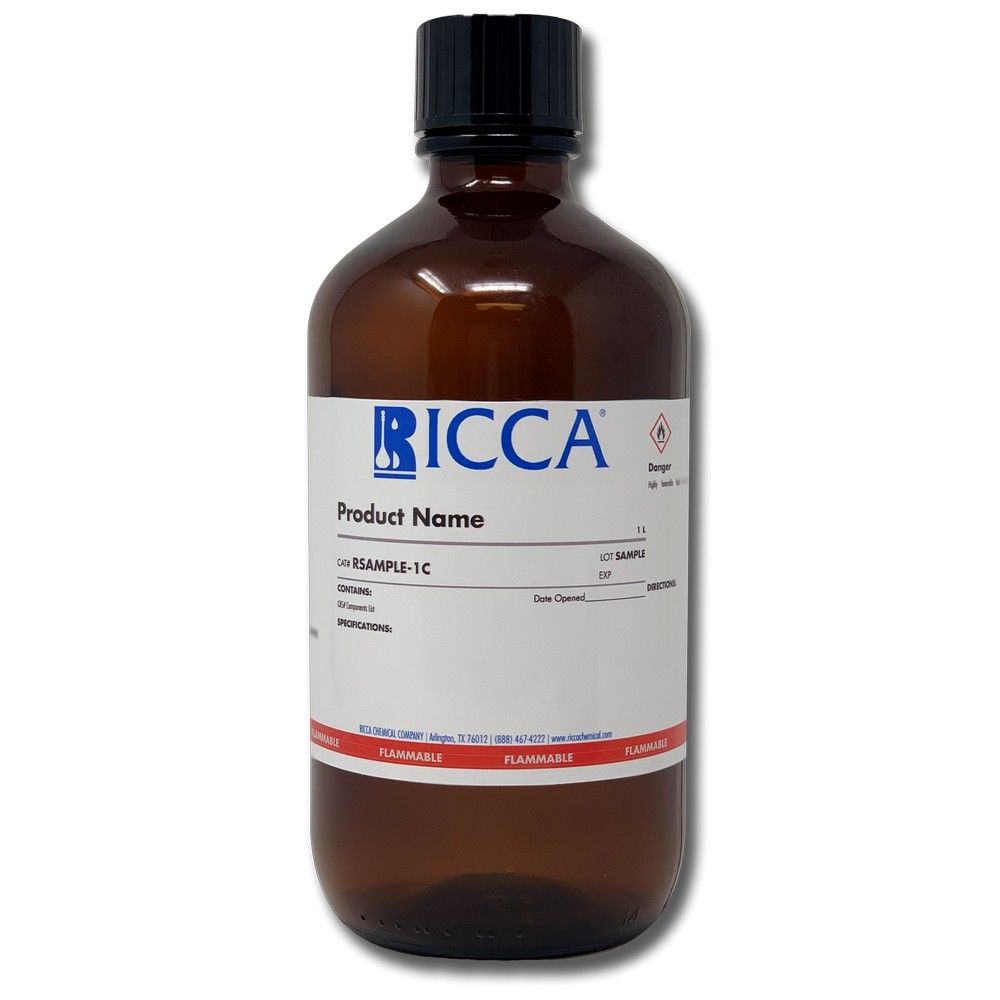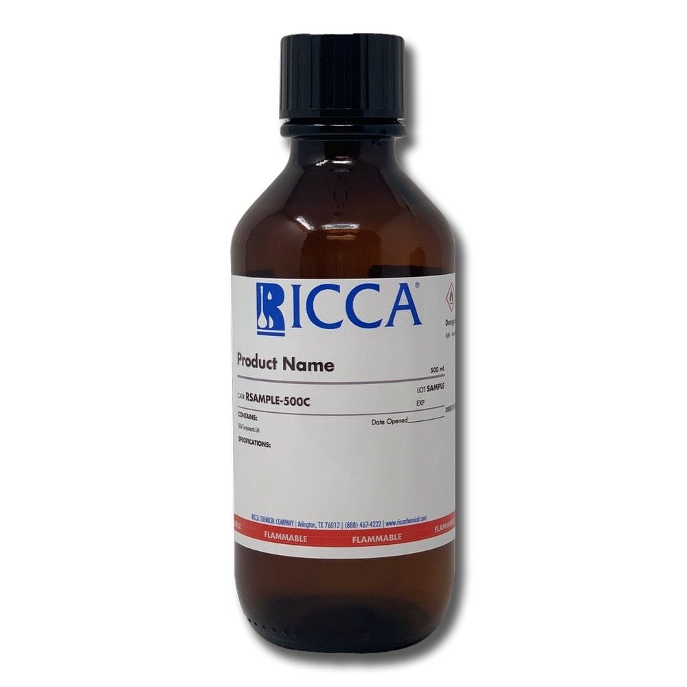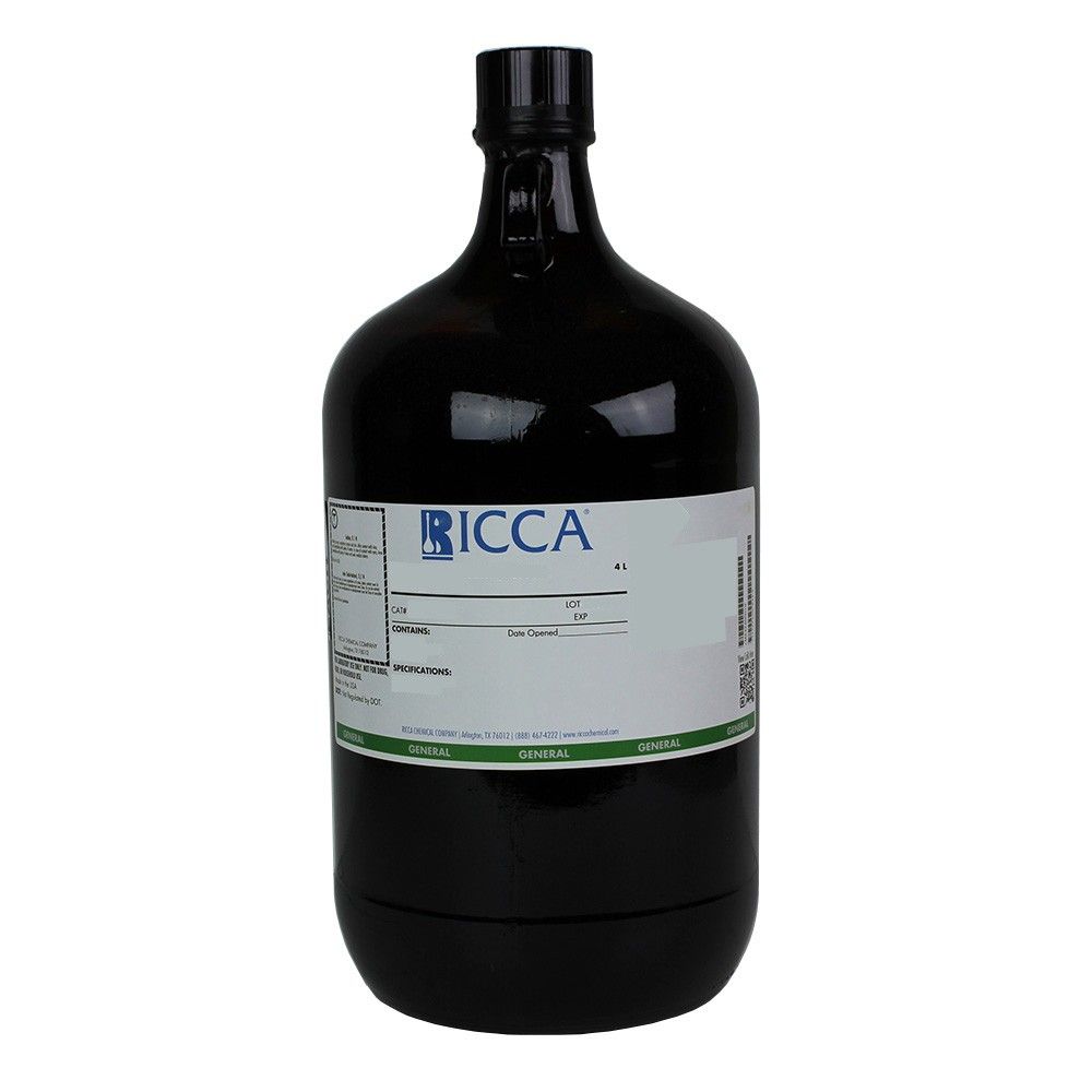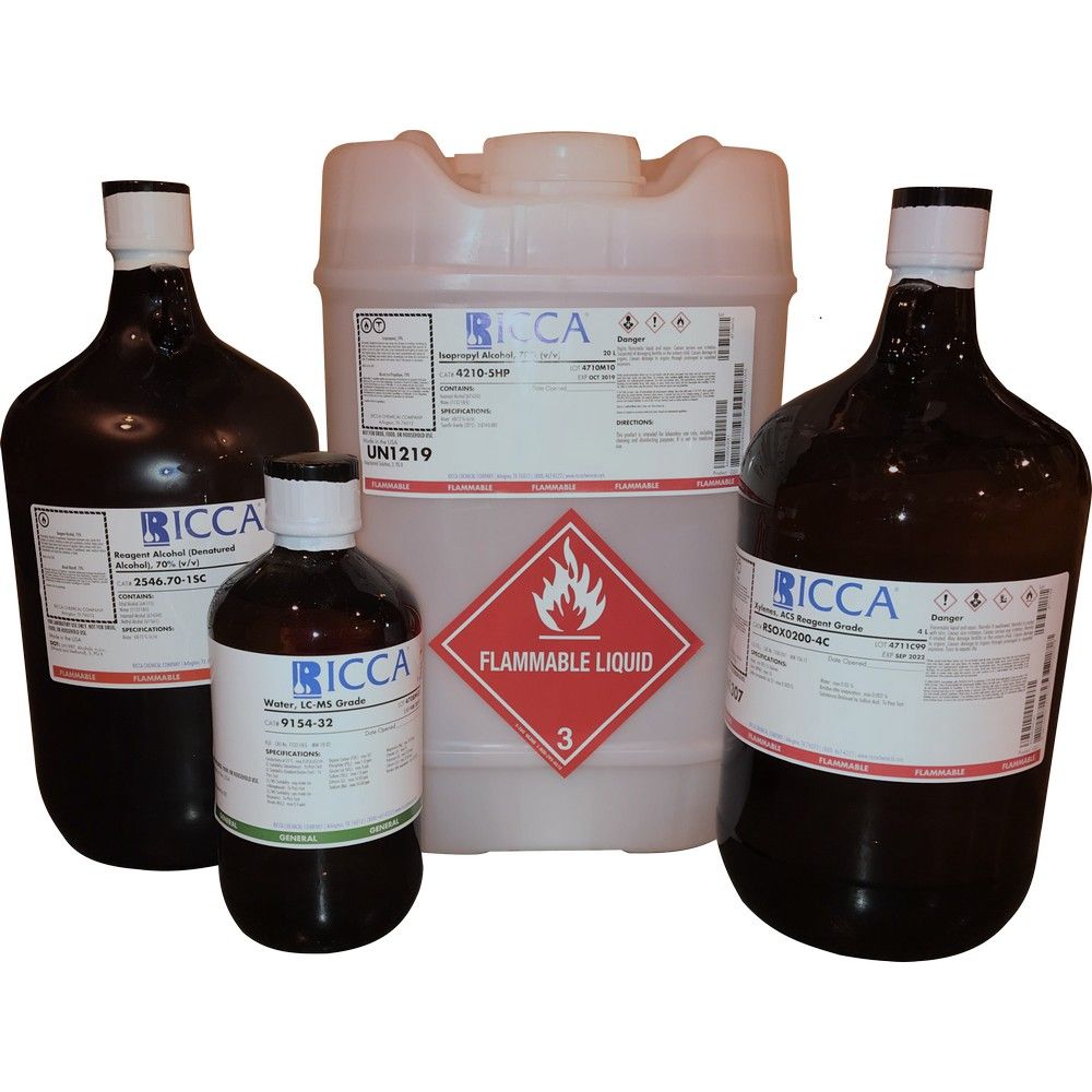 Available in five convenient packaging options ranging from 500 mL to 20 L, this colorless liquid solvent accommodates both routine laboratory use and high-volume operations. Whether you need the portability of glass amber bottles, the bulk capacity of metal cans, or the convenience of poly natural containers, Ricca provides the packaging solution that best fits your laboratory's workflow and storage requirements.