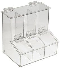 Heathrow Scientific's Workstation Dispensing Bin is available in 4 sizes to cater to many different needs. They feature flip-top lids to keep products dust free and make filling and dispensing easy. This product has non-skid rubber feet to keep it in place.