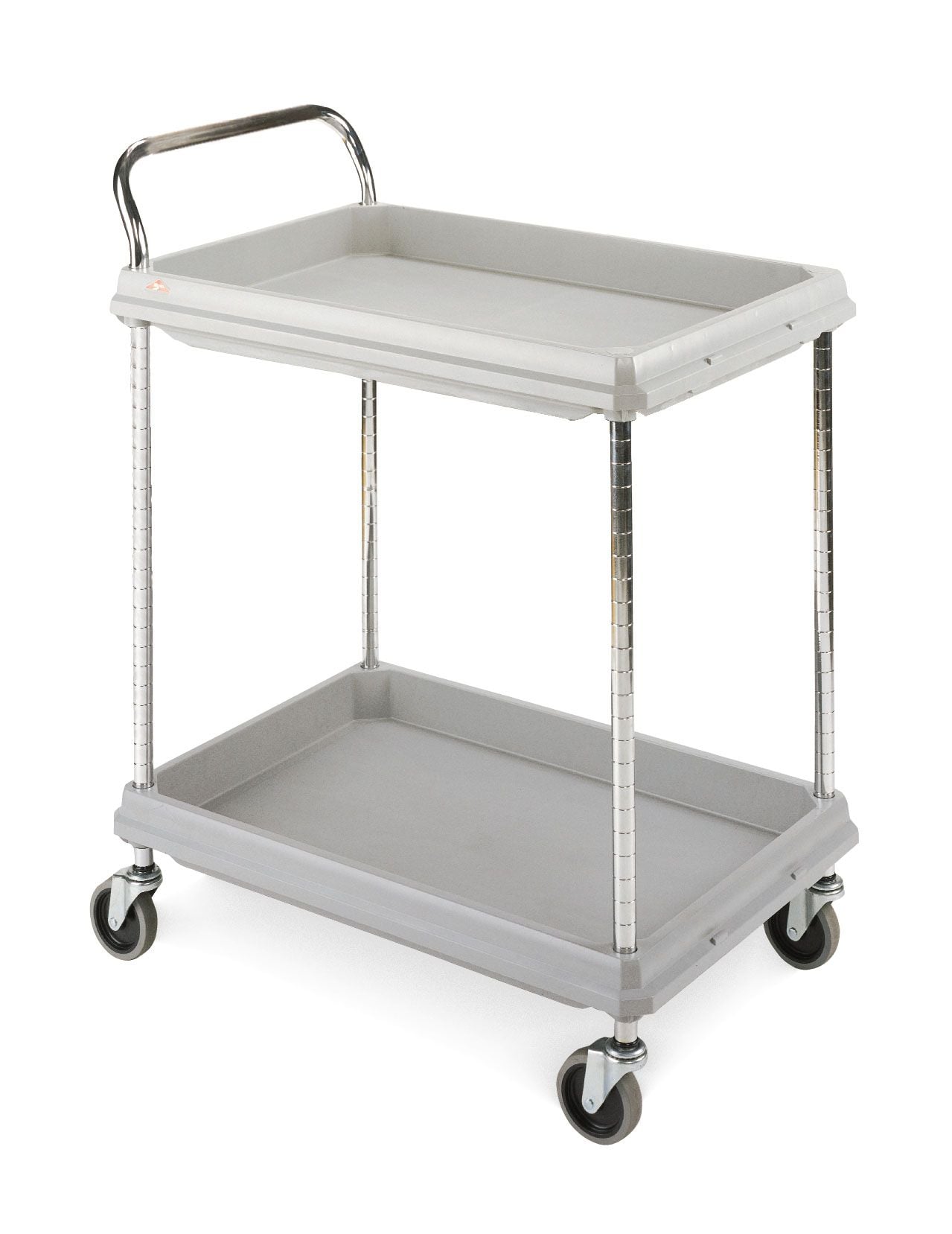 The polymer shelves are easy to clean and corrosion proof. The carts are available in three colors: black, gray, or blue. The blue models are infused with mucroban antimicrobial product protection to keep the product "cleaner between cleanings". Each cart comes with 4 wheels and steel handles.