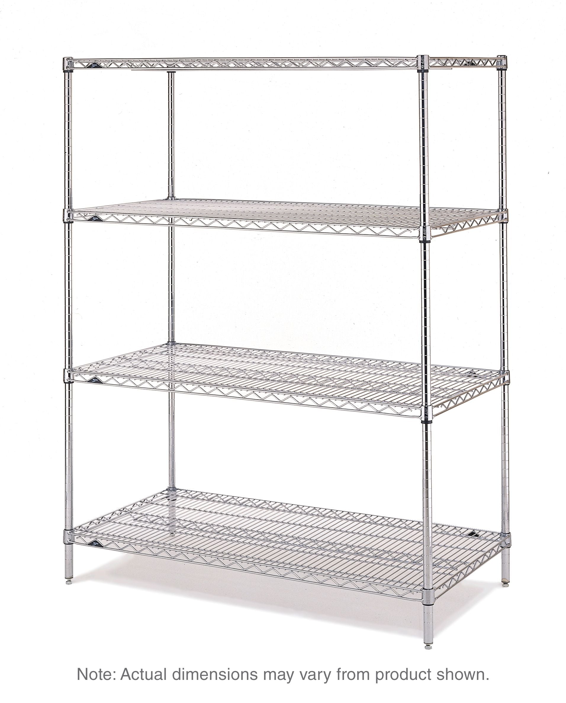 Shelves can be repositioned at precise 1 inch increments along the length of the numbered posts. Open-wire design minimizes dust accumulation, allows a free circulation of air, and greater visibility of stored items. The shelving is constructed from steel with a strong chrome finish. This product contains a 1 year defect warranty from the date of product shipment.