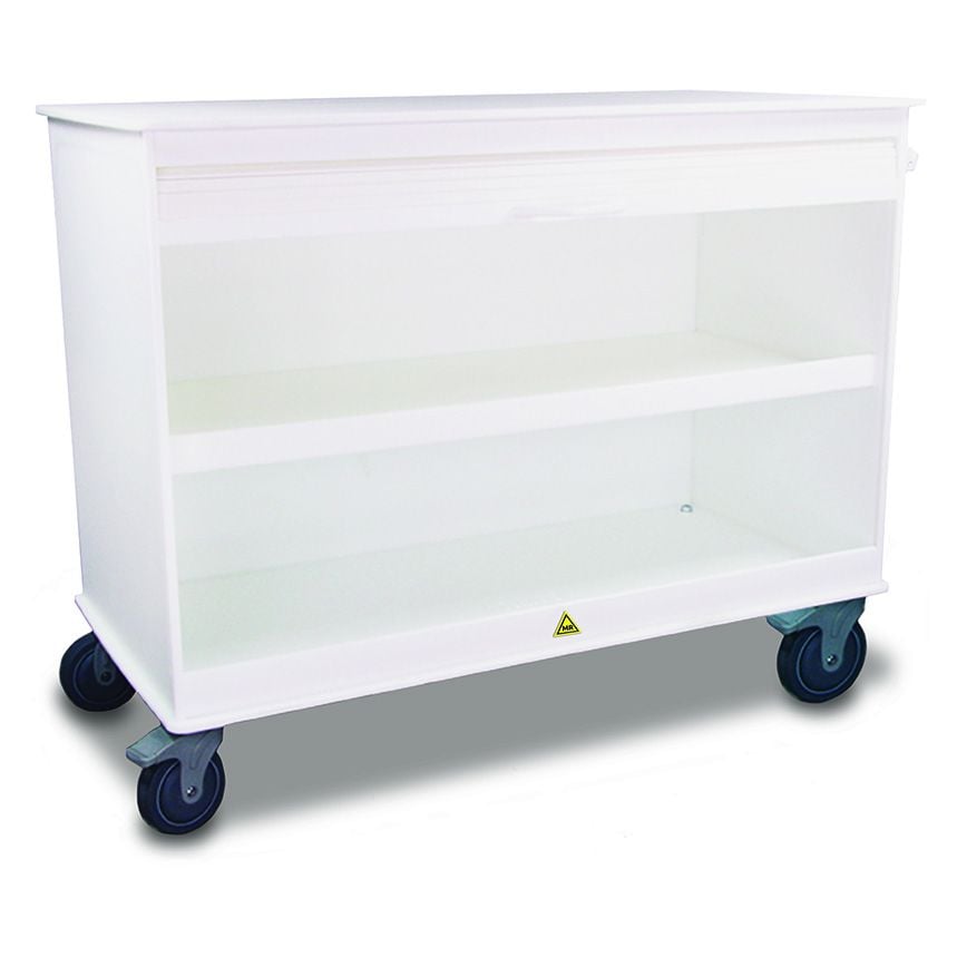 For specialized laboratory settings like MRI labs, diagnostic centers, and radiology departments, choose TrippNT's White Polyethylene MRI Cayman Lab Island 4-Foot Lab Cart. This meticulously designed cart is constructed from nonferrous, durable, and resistant high-density polyethylene, making it perfectly safe for MRI environments. It offers a substantial amount of storage and work space, ideal for organizing and transporting supplies while maintaining a clean, professional appearance.