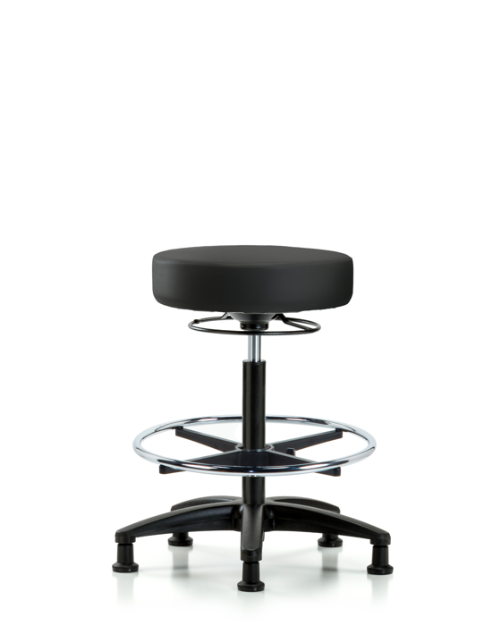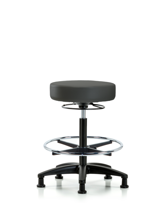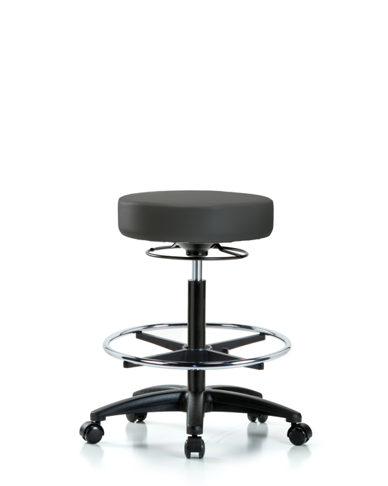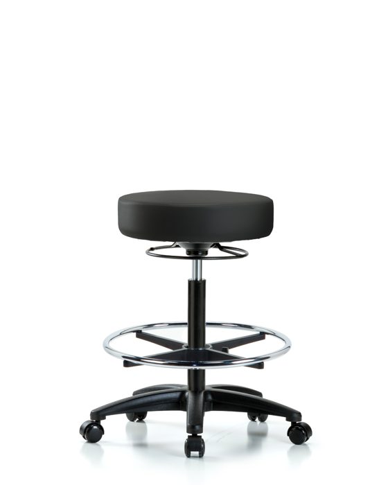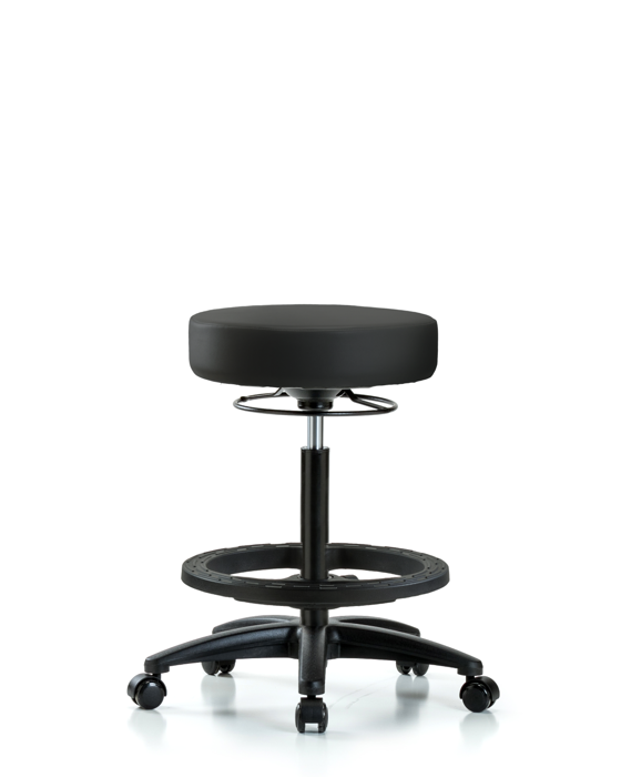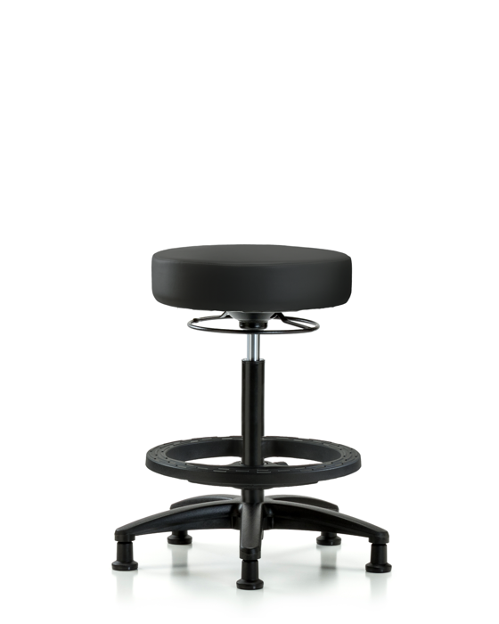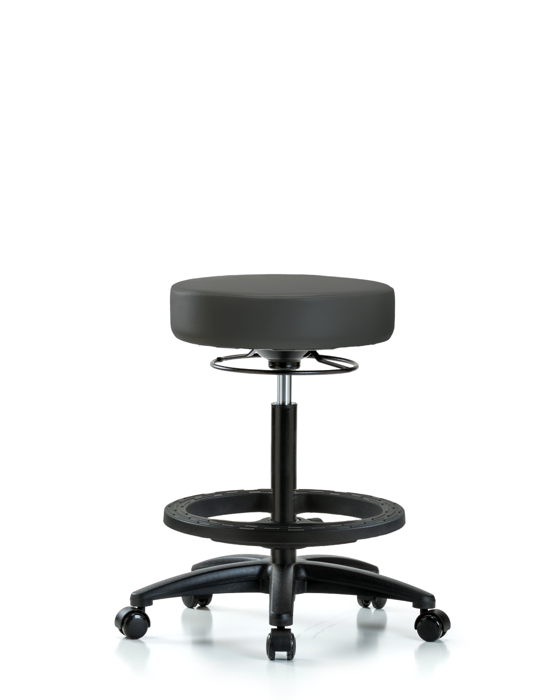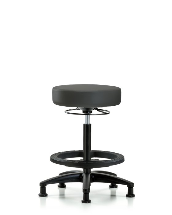 Our ergonomic vinyl stools are durable and offer a 360° all-around height adjustment ring that can be operated from any position. These desk height stools feature your choice of black rolling casters or black glides on a nylon-reinforced fiberglass base. Each ergonomic stool is backed by our 15-year warranty. This stool is also available in medium bench or desk height.