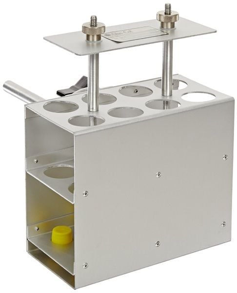 The test tube rack holder lets you shake one or two entire racks of test tubes at once. Does double duty as a holder for bottles, Erlenmeyer flask, or other stoppered containers.