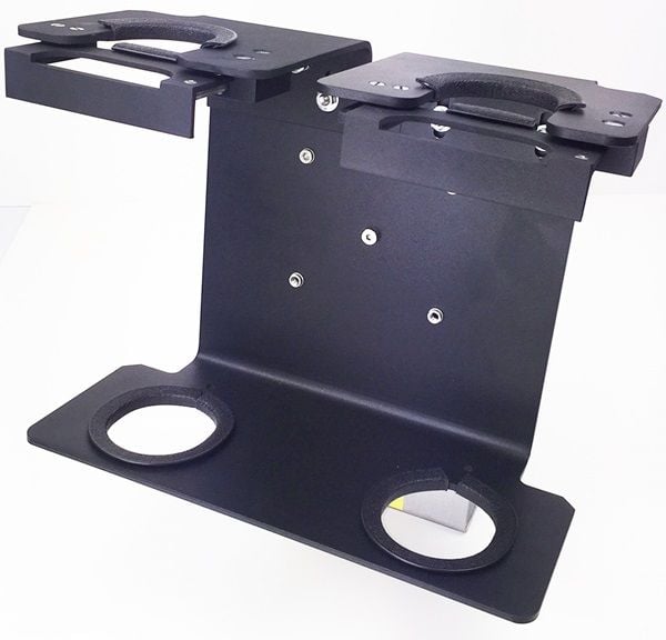 The Universal Mounting Platform is set conveniently on top of the shaker head and is held securely with three hand-tightened locking knobs. The Series BT holders also install quickly atop the platform through pre-located mounting holes. Two locking knobs secure each holder in place. The platform accepts two holders.