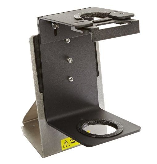 This flask holder lets you shake one to four Erlenmeyer flask at a time. It will work with uncapped flasks (for gentle shaking), or you can close them with screw caps or tapered stoppers. An elastic band automatically holds the stoppers in place. Maximum of two flask holders can be shaken at once. A locking knob secures holder in optimum positions for both loading flasks and for effective shaking. While mounted on shaker, the holder can be rotated 180°.