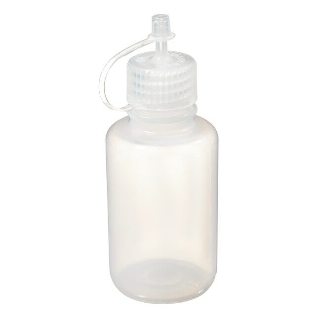 Use one hand to conveniently operate translucent Thermo Scientific™ Nalgene™ LDPE Drop-Dispenser Bottles. Bottles feature tethered spout caps which snap securely in place and won't break away when bottles are squeezed. These low-density polyethylene bottles are chemically compatible with most acids, bases and alcohols. View liquid levels easily through translucent wall.