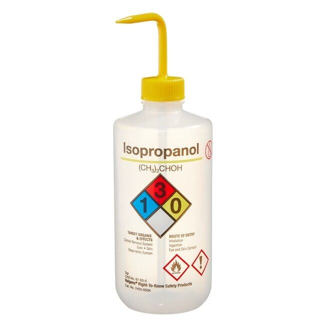 Meet NFPA and ICS labeling standards for chemical containers with Thermo Scientific™ Nalgene™ Narrow-Mouth Right-to-Know LDPE Wash Bottles, which use standard, instantly recognizable colors and GHS symbols. These low-density polyethylene bottles are flexible and easy to squeeze for ergonomic dispensing. Made from high quality laboratory grade plastic materials for dependably low leachables and extractables.